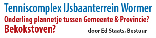 Stichting SPIJT heeft het onderzoek naar een nieuwe plek voor tenniscomplex Wormer afgerond. De Gemeente Wormerland geeft vooralsnog de voorkeur aan het IJsbaanterrein, maar een locatie aan de Spekhuisstraat is volgens onderzoek van SPIJT een veel betere plek.