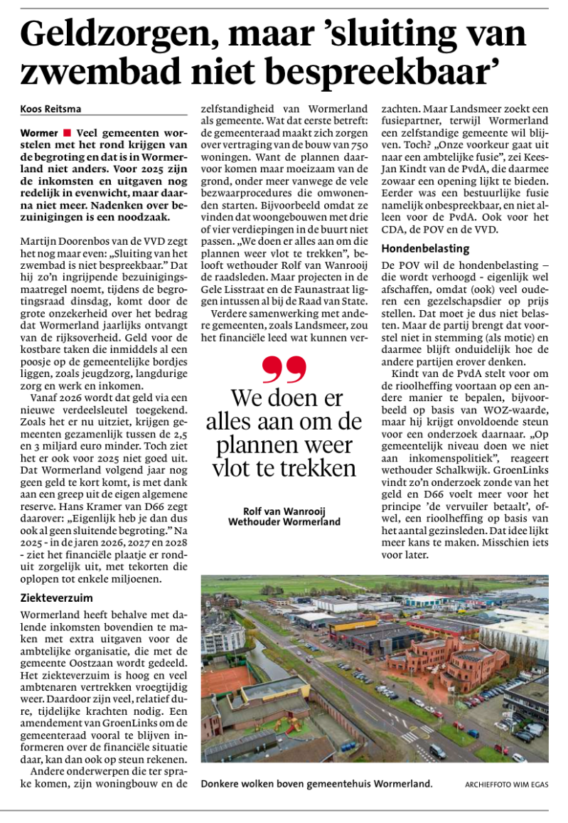 De gemeente Wormerland komt pas vragen wat wij ervan vinden als het besluit al is genomen.