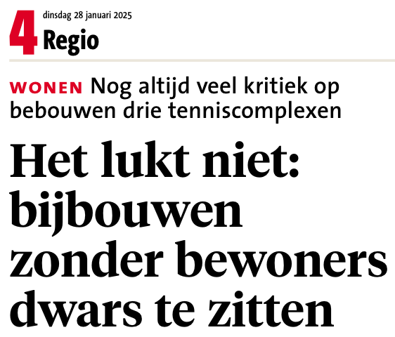Klankbordgroepen en participatie . . . . . . Er komen volgens het rapport van Sweco (april 2025) gewoon 11 tennisbanen i.p.v. benodigde 6 banen ! ZIE RAPPORT