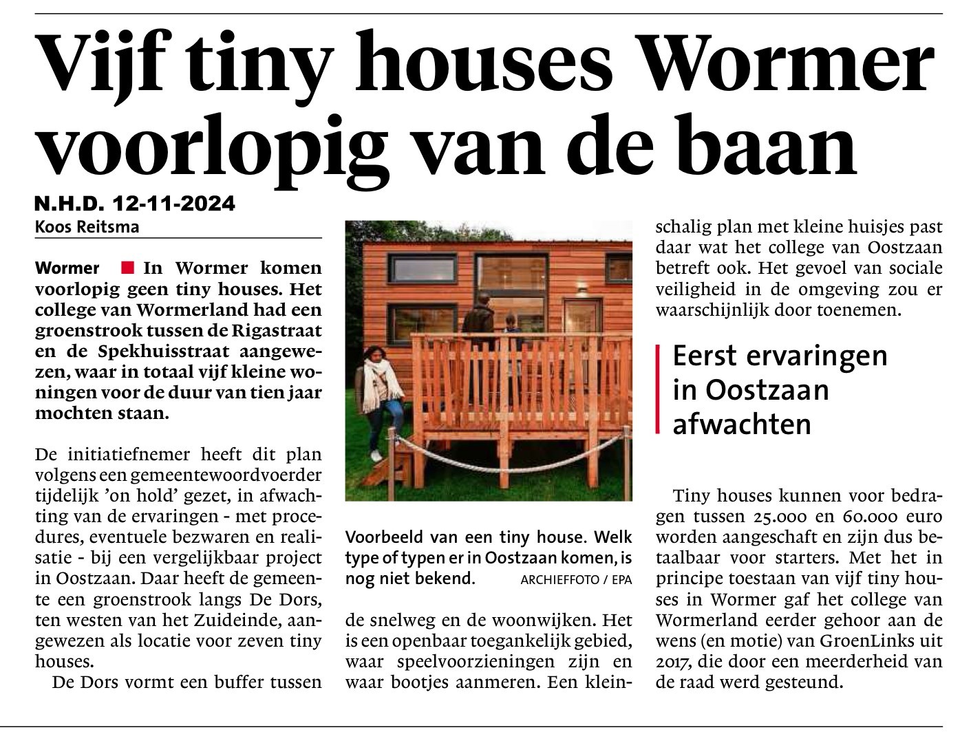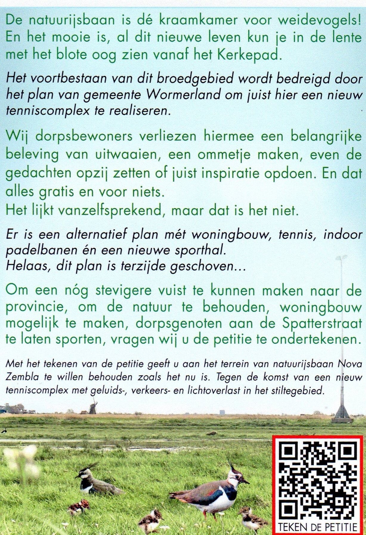 KORTOM, EEN DUIDELIJKE BOODSCHAP VANUIT DE GEMEENSCHAP VAN WORMER AAN DE INITIATIEFNEMERS.