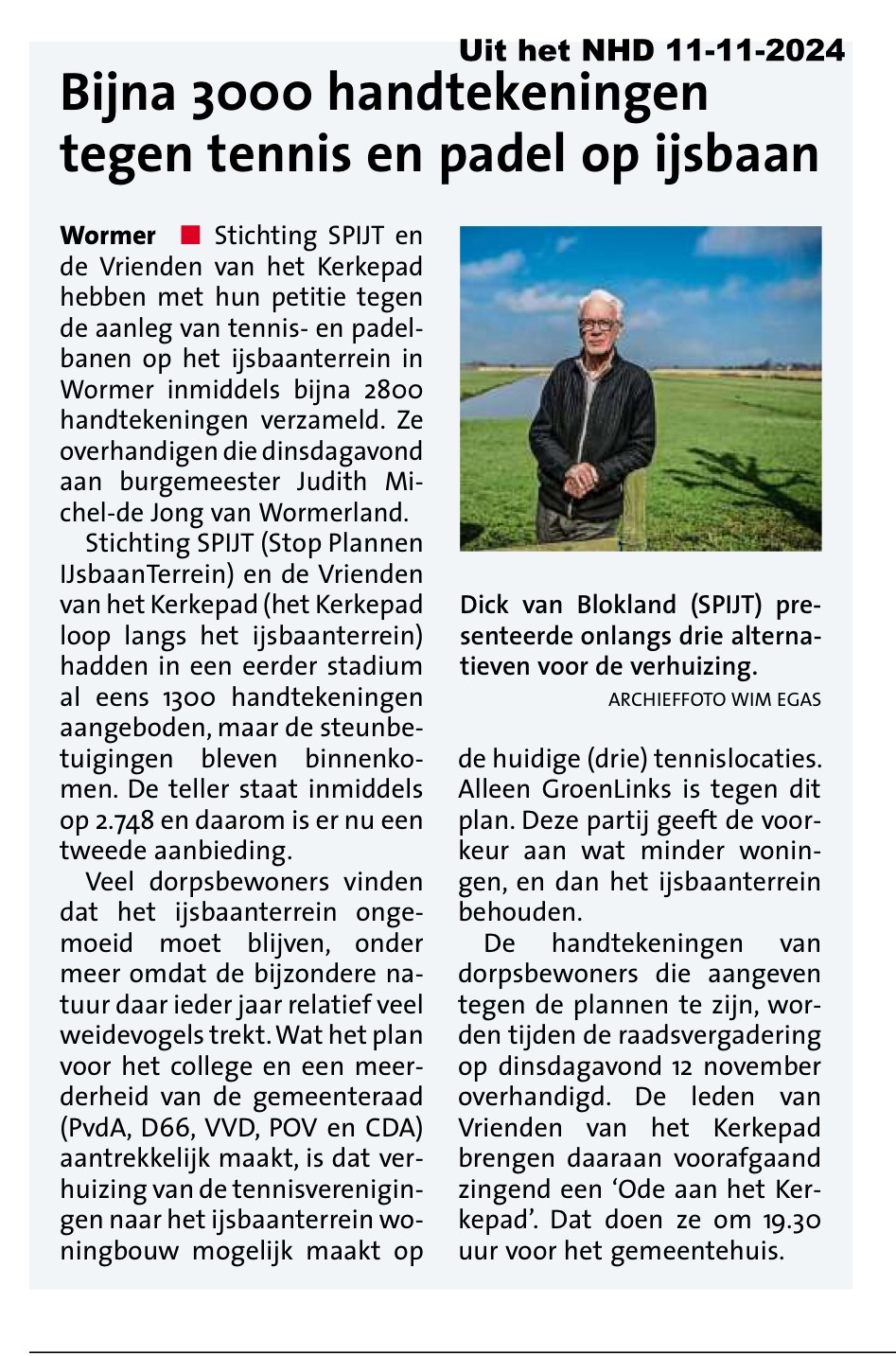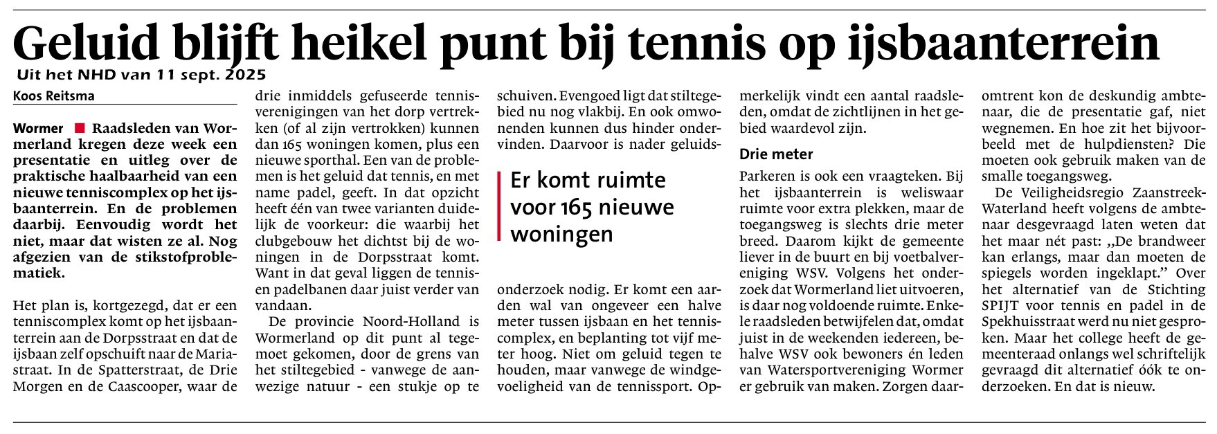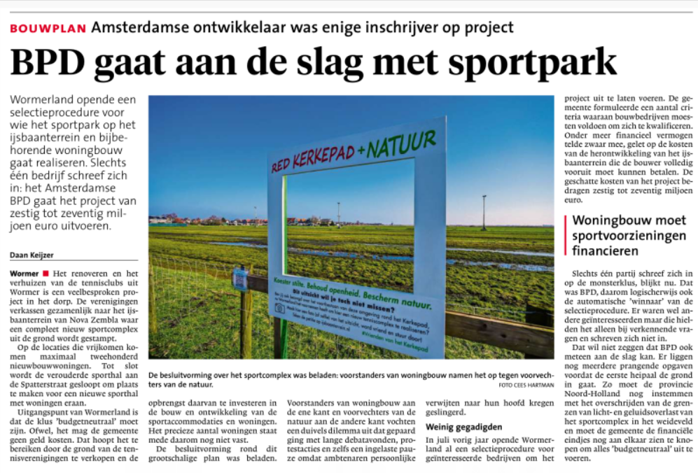 Op de vergadering van de Provincie (12/5/2025) en die van de Gemeenteraad Wormerland (13/5/2025) zijn nogal wat verwarrende uitlatingen gedaan. Maar met de geëiste aanvullende voorwaarden zoals de landschappelijke inpassing van het gebouw en de padelbanen v.w.b. de open ruimte en vergezichten alsmede de habitat voor weidevogels, invloed van verlichting op landschap en op de fauna is het nog geen 'einde wedstrijd' Een 'tiebreak' moet zorgen voor een oplossing.