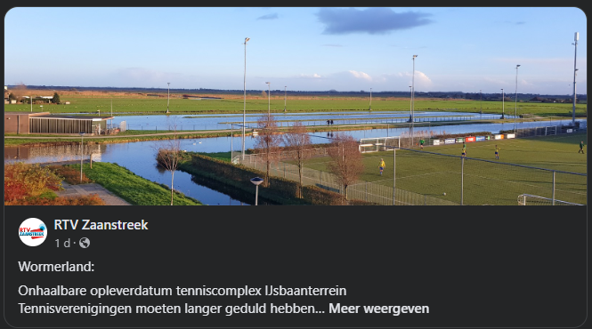 Gemeente Wormerland begrijpt de teleurstelling die is ontstaan bij de tennisverenigingen dat het proces van het project sportaccommodaties nog langer gaat duren. Op 5 juni jl. was er nog een heuse 'jubel'-stemming bij de ondertekening van een overeenkomst met BPD en de 3 tennisverenigingen (er zijn er nu nog maar 2), thans moet de Gemeente op zoek naar alternatieven.