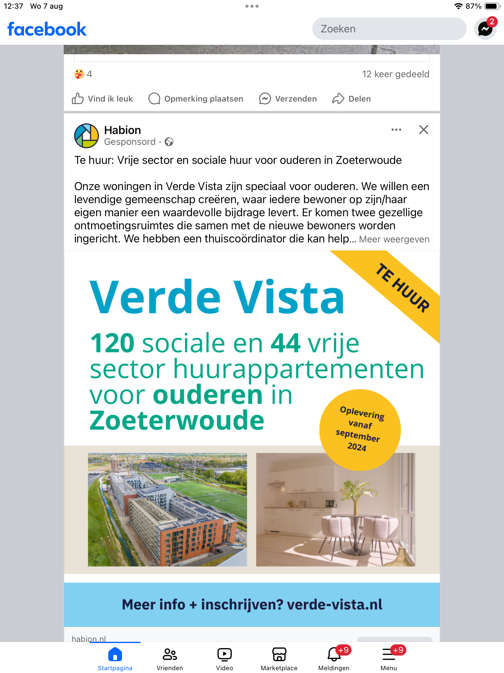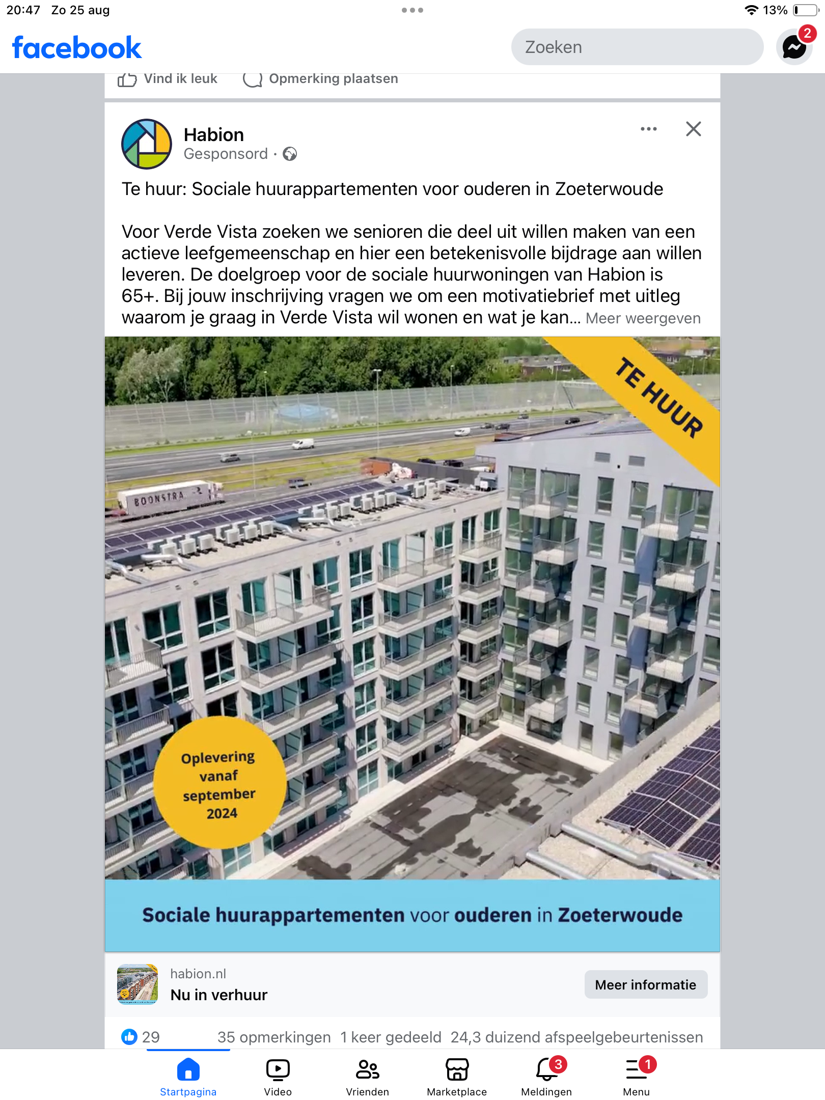 Het valt ons namelijk op dat een aantal partijen intensief adverteren met vooral huurappartementen in vrije sector en sociale huur, alsmede voor ouderen. INTERESSE ?